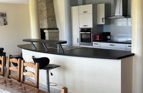 near the landing beaches, 1:00 from mont saint-michel and the city of the sea in cherbourg Independent house. Stay. Kitchen. 1 bedroom on the ground floor (1 bed 140) .4 bedrooms upstairs. 1 bed 140. 2 beds 90 bunk. 6 beds 90. 1 cot.2 bathrooms. 2 toilets. Fireplace. TV. DVD player. Hi-fi system. Internet access. Washing machine. Dishwasher. Sheets and linens for rent. Housekeeping service. Dishes delivered to the lodging in supplement. Closed ground. Picnic tables. Portico. Terrace. Barbecue. Shelter. Cycling available.