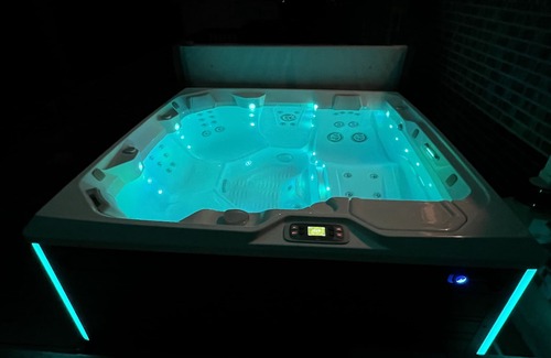 a private saltwater hot tub under a covered porch—perfect after a day of adventure