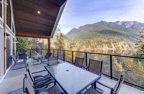 Newly built Lakehouse surrounded by pristine forest on beautiful Kawkawa Lake. Sleeps up to 12 with 5 bedroom and 3 bathrooms. Stunning views overlooking the lake and mountains of Hope, BC. Come relax with the whole family and enjoy the private sandy beach (across the road) with private dock and deck.