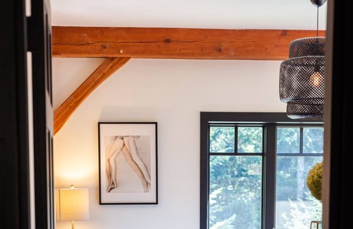 Large, bright secluded house in the forest. 10 minute drive to Snug Cove and 2 minute walk to bus route. 5 minute drive to multiple beaches. Rooftop deck, hot tub, BBQ, outdoor patios/dining areas, wood fireplace, professional interior design. Fully equipped kitchen and kids amenities. Multiple parking spaces. NOTE: we have two indoor/outdoor cats and quiet, tenant living in basement suite. Business Licence # 00000679.