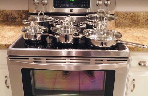 the kitchen, living room, two dining rooms, a half bath, and a sunroom are downstairs The kitchen has been updated with new light fixtures, and a flat top electric cooking range. The floors are built with hardwood and new tiles. Baby crib, high chair and playpen are provided upon request. TV in the living room with Xfinity including ESPN. Roku TV is in a bedroom. Fast Internet. Fenced backyard and two-car garage..