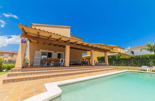 Large villa for 10 with private pool and beach location, near Alcudia, Mallorca is located in es Bacares. Large villa for 10 with private pool and beach location, near Alcudia, Mallorca provides accommodation, featuring Private Pool, Bedding/Linens, Parking, among other amenities. This Villa features Private Pool, Bedding/Linens, Parking, to make your stay a comfortable one.