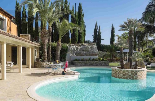 Villa La Palma is situated in the quiet countryside, near the town of Agrigento and yet not far from the beach. It\'s a perfect venue for those seeking privacy, comfort and relaxation. And for those history and archaeology buffs, it\'s also near the Valley of the Temples, a majestic UNESCO World Heritage site and an outstanding example of greater Greek art and architecture. This exclusive property sleeps up to 14 guests in two buildings and offers a large private pool with Jacuzzi, lush gardens, furnished terraces for al fresco dining (with external kitchen, barbecue, and wood oven), a Turkish spa for relaxation, and numerous sporting activities. On the ground floor of the Main house is a large living area with lounge and dining room, a modern well-equipped kitchen (fridge/freezer, oven, gas stove, espresso coffee machine, dishwasher, mixer, kettle), and a guest bathroom. The first floor, accessed through an open-plan staircase and a lift, houses a master bedroom with a luxurious ensuite Jacuzzi and whirlpool shower, and two further bedrooms with ensuite bathrooms. There is a loggia with external kitchen, dining area and bbq, porch, terraces, garden.the new external kitchen is well equipped with the following facilities:- 2 dishwashers