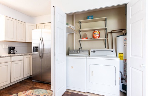 • 3 bedrooms with 1 queen bed in each • washer & dryer • air-conditioning + ceiling fans • roku tv • private deck with seating in large backyard! • full kitchen • bbq grill • free outdoor parking