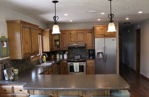 Beautiful three bedroom, two bathroom home in Central Sioux Falls. Located near entertainment, restaurants, venues, sports complexes and golf courses. Living space is open and offers enough room for all guests with the large kitchen, dining area and screened in porch. Enjoy the gas grill in the fenced in backyard. Kitchen is stocked with settings for six and contains pots, pans, and basic necessities. This home offers use of the double garage and even has a jetted tub in one of the baths..