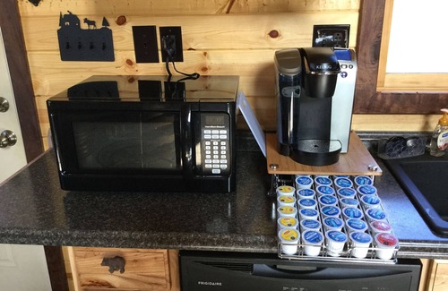 totally surrounded by woodlands and wildlife this cabin has everything you need for you weekend stay This newly constructed cabin is equipped with all the amenities you will need. . . from the Keurig coffeemaker to the flat screen TV’s. Sit back with that special someone and watch a movie by the fire and drink a glass of wine..