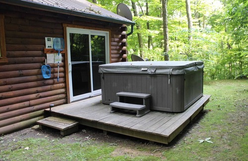 Rustic luxury secluded on 10 wooded acres. Total privacy. Hot Tub, gas grill,fireplace, fully equipped kitchen, luxurious king size bedroom. Perfect romantic getaway. 9 state parks within minutes