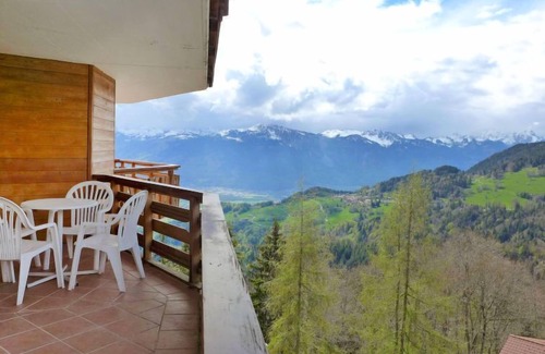 "le bristol a54", 2-room apartment 57 m2 on 5th floor Bright, comfortable and beautiful furnishings: large living/sleeping room with 1 double sofabed (2 x 80 cm, length 200 cm), dining table, bath/WC and TV (flat screen), DVD. Exit to the balcony, west facing position. 1 double bedroom with 2 beds (90 cm), bath/WC. Exit to the balcony. Kitchenette in the entrance (mini-oven, oven, 2 ceramic glass hob hotplates, toaster, kettle, microwave, electric coffee machine, raclette grill, fondue Set (cheese)). Balcony 14 m2. Balcony furniture. Very beautiful view of the mountains and the valley. Facilities: hair dryer. Internet (WiFi, free). Please note: non-smokers only.