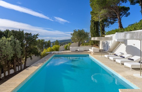 We offer a luxurious villa, Le Corbusier, built in 1970 and renovated to modern standards. It offers a panoramic view of the sea, the mountain, and Cassis village. This privileged villa is on a cul-de-sac that enjoys an exceptional setting on the private Super Cassis estate.