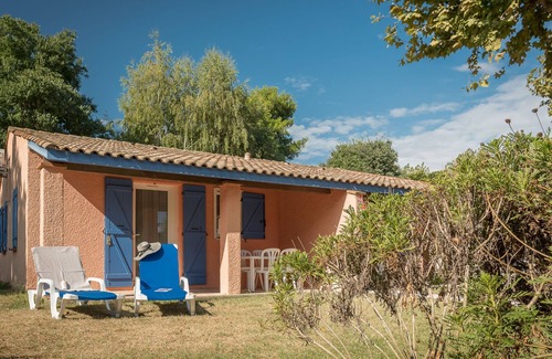 "le mediterranée", 3-room terraced house 39 m2 Renovated in 2009, practical furnishings: living/sleeping room with 1 double sofabed, dining table, satellite TV, international TV channels and air conditioning. 1 room with 1 french bed (160 cm). 1 room with 2 beds (80 cm). Kitchenette (2 hot plates, dishwasher, toaster, kettle, microwave, freezer, electric coffee machine). Shower, sep. WC. Electric heating. Terrace. Terrace furniture, deck chairs. Facilities: children's high chair, baby cot for up to 2 year olds (extra). Internet (WiFi, extra). Maximum 1 pet/ dog allowed.