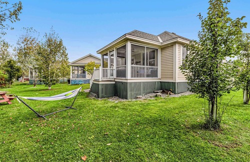 east lake shores is a delightful gated cottage community with a lovely sandy beach, fenced dog park, dock, pool, canoes, kayaks, swimming pools (adult & family), tennis courts, shuffleboard, basketball courts, badminton, play structures, movie theatre, gym, plenty of communal fire pits, picnic tables and restaurant pop-ups - all within a short walk of your cozy cottage!