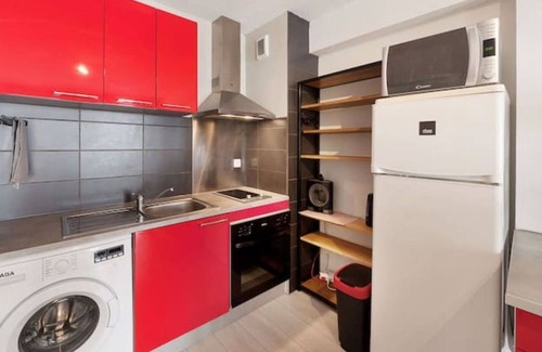 prepare a home-cooked meal in the kitchen, complete with an oven, a stovetop, and a refrigerator, as well as a coffee maker, an electric kettle, and a microwave Connect to the free WiFi, or get cozy in front of the TV. Bathroom amenities include a hair dryer, towels, and toilet paper. And you won't have to pack extra clothes, because you'll also have a washing machine. Other amenities at this 1-bedroom, 1-bathroom rental include a living room, bed sheets, an ironing board, and heating.