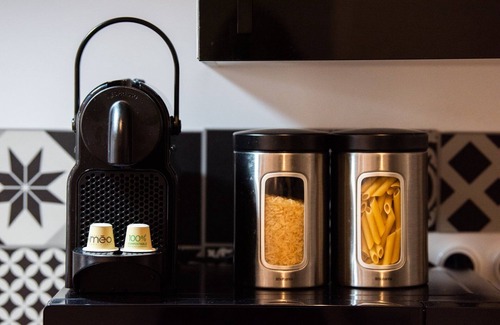 we provide you with convenience products (rice, pasta) and you have access to a fully equipped kitchen (electric stove, nespresso, microwave..).