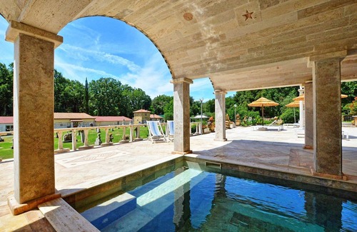 at guests’ disposal: large park (with open-air museum), swimming-pool (16 x 8 m – maximum depth 1,4 m – open from 01/05 to 30/09 – open from 9.00 to 20.00), characteristic swimming-pool covered by a travertine vault (warm water - 3 x 9 m – maximum depth. 1,4 m – open all year round from 9.00 to 20.00), large travertine solarium with sun-beds, open-air shower, drink dispenser. Guests can also enjoy use of a large shared TV room (toilet). Shared laundry (€ 2,- / per washing).