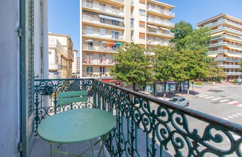 Fully-renovated stylish studio with Fiber Optical Internet and a balcony in the center of Aix-les-Bains, across the street from the train station .