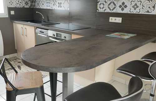Located in a quiet residential area close to all amenities and major roads, the accommodation is ideal for your business trips, family reunions or simply visiting our region. Parking, terrace and Wifi are at your disposal to make your stay more pleasant. Charming 53 m2 air-conditioned house that can accommodate up to 4 travellers, consisting of a living room with kitchen and dining room, 2 bedrooms, one of which can be used as a lounge, it is ideal for teleworking or holidays.