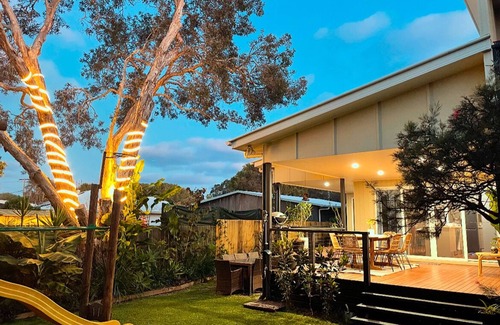whether you want to take a short stroll to the beach, park, restaurants, or hang on the deck and let the kids play in the cubby or on the trampoline, paperbark paradise has something for everyone And the house accommodates eight people!! Come enjoy!!.