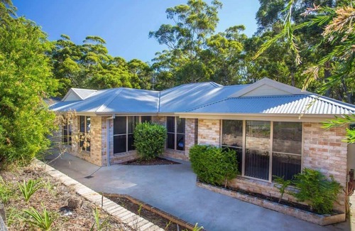 family-sized ulladulla home near harbour Multiple living areas, nestled in trees. Walk to pools, restaurants & beach. Entertainment plus.