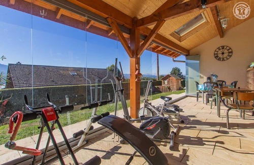 House on 2 levels, gîte in the owner's house with independent entrance, independent and enclosed garden, private parking (2 spaces). Children's games, summer kitchen, pond on the property. 1 step to access the house. On the ground floor: kitchen in the hallway, dining room, outside access to the fully openable veranda (gym / information point / dining area / children's games). On the 1st floor: lounge area on the mezzanine with office, 1 separate toilet, 2 bedrooms (2 single beds 90x190 cm and 1 trundle bed 90x190 cm / 1 double bed 160x200 cm), small baby alcove with changing table and wooden baby bed (60x120 cm), bathroom (shower and toilet). Fully enclosed and landscaped grounds. Wired internet connection. Possibility of table d'hôtes on request. On the heights of Dullin, the Cimes du Lac stand there facing the Montagne de l'Epine and overlook the Lac d'Aiguebelette from where you can admire the view. Perfectly suited for a holiday between lake and mountain, discover the land of the Lac d'Aiguebelette, its lake and mountain activities, its remarkable site and the purity of its waters. Swimming pool shared with the owners, from May to October from 2 p.m. to 8 p.m. (9m x 4m swimming pool unheated but covered in bad weather)..