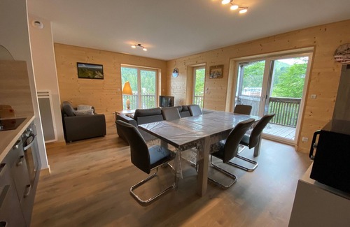 Superb new 58 m2 apartment in the Masseboeuf district in Le Lioran, just a few metres from the ski slopes. Located on the -2 level of the Les Estives chalet, you will find in this fully equipped and comfortable ground floor accommodation, a large entrance with a wardrobe and washing machine, a first bedroom with double bunk beds in 160x200 and a second bedroom with a double bed in 160x200. Each of them is equipped with a storage wardrobe.