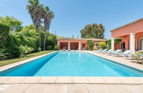 Very beautiful villa "Les Mûres mûres". Outside the resort, 5 km from the centre of Grimaud, in a quiet, sunny position, 1.4 km from the sea, 1.4 km from the beach. Private: well-kept garden (fenced) with lawn 2'000 m2 trees, swimming pool (6 x 12 m, depth 100 - 200 cm, seasonal availability: 01.Apr. - 01.Oct.) with alarm system. Shop 4 km, grocery 300 m, supermarket 4 km, restaurant 800 m, bus stop "Camping de la Plage" 1.3 km, sandy beach "Les Prairies de la mer" 1.4 km. Sports harbour 3 km, golf course (18 hole) 4 km, sailing school 5 km, tennis 4 km, cycle lane 800 m. Nearby attractions: Saint Tropez 11 km, Sainte Maxime 11 km, Plages de Pampelonne 17 km, Cannes 85 km, Nice 110 km, Monaco 130 km. Well-known lakes can easily be reached: Le Lac de Sainte Croix 98 km. Hiking paths: Le Massif de l'Esterel 50 km. The keys‘ handover takes place by the agency Interhome in Gassin, 4 km.