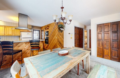 come home from a day of adventure to be greeted by a living room with lofty, two-story ceilings, where walls of glass flood the space with light and a wood-burning fireplace waits to toast your frozen toes In the winter months, curl up on the sofa to stream a favorite movie on the smart TV. Come summer, step out onto the spacious patio to share cold drinks and appetizers in the alpine sunshine.