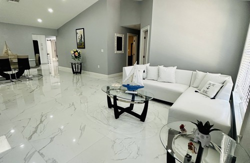 Stay at this beautiful spacious house with 6 bedrooms to rest and accommodate everyone, have fun in the game room area to enjoy even more your vacation. The house is located in a quite neighborhood From here you have easy access to everything , Is 15 minutes drive to downtown Fort Myers , 35 minutes drive to Fort Meyers Beach..