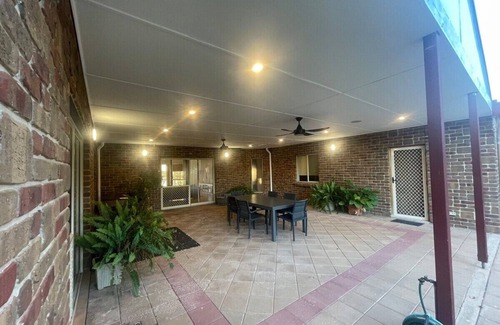 with 5 double bedrooms, a sofa bed, 2 bathrooms, a large kitchen, dining and living area, a separate games room, a private courtyard and spacious deck - there is plenty of room for large groups and entertaining no matter what the weather