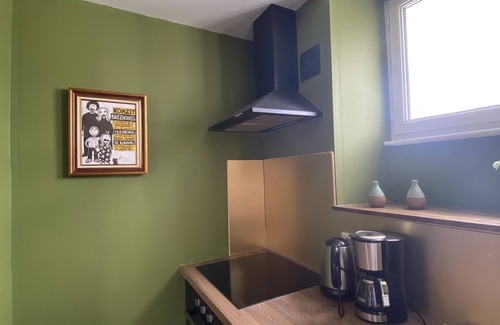 a living room, a dining area, and a bbq grill are featured at this 2-bedroom rental Prepare a home-cooked meal in the kitchen, complete with an oven, a stovetop, and a refrigerator, as well as a coffee maker, an electric kettle, and cookware. And because there's a washer and dryer, you can go a bit lighter on your packing.