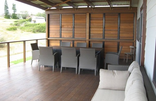 basic in layout, but that is offset with the huge deck that provides unequalled spectacular ocean views on the whole of the mid north coast, offering picturesque views of the well known little beach