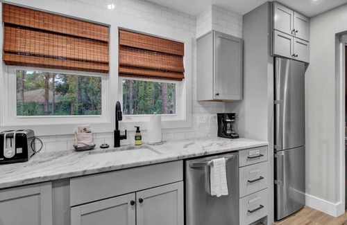 finally, there are as many extras as seashells on the beach such as board games, labeled switches and knobs, full size stacked washer/dryer, new bedding, built in bunk beds, barn doors, and a new exterior