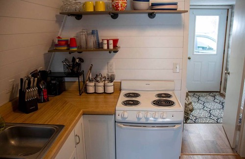it has an abundance of amenities and beautiful furnishing enriched by plenty of natural light accenting the modern rustic décor and unique details every inch of space is well-used, which is best visible in the open-concept living area that combines the fully equipped kitchen with the inviting dining area and the