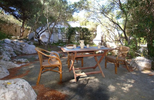 This little house is located in an exclusive and unique estate consisting of several villas and trulli, separated by pine trees. It is known as "La Palombara" and was popular with VIPs in the seventies and eighties. At the end of 2019 we rediscovered this heavenly place and we chose to upgrade and redesign parts. It is now available for guests that are looking for a hideaway from the hustle and bustle of everyday life. In the photo gallery you will find a map of the entire grounds. A path leads from the property directly to the sea. On your way down, you will pass some picnic areas with breathtaking views. Once on the rocky beach, you will find four access points for swimming, diving, snorkeling or fishing in the crystal clear water of the Lower Adriatic Sea. It might be possible to see passing dolphins especially from the picnic areas. (Caution: the path and access to the sea from the rocks is not suitable for small children or people with disabilities).The trullo, made of beautiful stone walls, has one double room with fully renovated en-suite bathroom with shower and a living space with kitchen (including a dishwasher), an additional single bed and a fireplace. The interior is simple but functional; there is no TV nor air conditioning, but the thick walls and pine trees mitigate the heat of the summer sun. Free WiFi available, unlimited and perfectly suited for those who are here to work remotely from a stunning location. A barbecue and an outdoor shower complete the picture.The well-known fortified village of Castro, with its bars, cafes, restaurants and a supermarket, can be reached on foot in less than ten minutes. The walk is along a charming path under the ancient Messapian walls. For those who prefer sandy beaches to rocks, the enchanting sandy beach of Porto Miggiano is 5 km away; very charming are also the coves of Porto Badisco and the long sandy beaches of Alimini, north of Otranto.The well-known fortified village of Castro, with its bars, cafes, restaurants and a supermarket, can be reached on foot in just ten minutes. The walk is along a charming path under the ancient Messapian walls. For those who prefer sandy beaches to rocks, the enchanting sandy beach of Porto Miggiano is 5 km away; very charming are also the coves of Porto Badisco and the long sandy beaches of Alimini, north of Otranto. Sheets, duvets and towels are not included. If you don't want to bring them with you from home, regardless of the length of your stay, you can rent them for €24 per person. Final cleaning is not included and costs €80, unless you clean yourselves before departure. Dogs and pets are allowed (max 2 dogs or pets, surcharge €100 per dog/pet). You will need to inform us in advance. We will ask you to pay a security deposit of €400 before arrival. The security deposit will be refunded within 7 days after departure, if there is no damage. Electricity costs (and thus where applicable AC, hot water, heating etc.) are NOT included in the price and will be charged based on your actual consumption. The price per kWh charged to guests was €0,52 on 06/01/2025, when this text was last updated, but as prices are fluctuating a lot, your actual price per kWh will be communicated a few days before your arrival based on the current market price.We decided not to include electricity costs in the rent in order to: a) keep our rental prices stable despite inflation and b) incentivate our guests to use electricity responsibly, helping us to reach our sustainability goals. Thank you for your understanding. ABOUT USWe're a team of holiday enthusiasts with diverse backgrounds based between Italy and Switzerland. 🇨🇭Our mission is to find the most unique holiday homes, refurbish them and make them available to people like you, who want to live the authentic Italian experience at a high (Swiss!) quality, without spending a fortune By booking this accommodation, you accept that:- We are obliged by law to verify the identity of all our guests. We will therefore ask you to upload copies of your IDs on our (secure) website to verify your identity before handing out the key code for the accommodation. Your personal data is treated in full compliance with EU data protection laws.- Also, we are obliged to sign a rental agreement with our guests (one person per group). This will be done digitally and requires just a few seconds on your side. You can find a template of the rental agreement on our website.- Parties, gatherings, events or loud music are not allowed at this property unless explicitly authorised beforehand by us in writing.- In case the local municipality charges a tourist tax, we will ask you to pay this separately to us and we will transfer it to the local authorities as required by law..