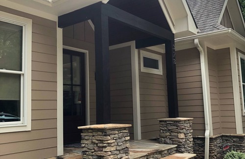 This beautiful waterfront home on Lake Keowee is a great place for a family vacation. The home features top of the line appliances, quartz counter-tops and all the latest upgrades. The home has four bedrooms with king beds, one bedroom has two queens, and their is also a private alcove with twin bunk beds for kids. On the main floor we have two large firplaces with gas logs. On the patio, we have a fire pit which is perfect for toasting marshmallows.