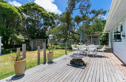 the beach house has a spacious under cover deck spanning along the front of the home as well as a rear deck which is perfect for catching the summer sun in the afternoon All elements of outdoor living are covered here with decking on both the front and rear of the home to relax and enjoy both the morning and evening sun. There is a gas BBQ on the back deck along with mozzie zappers for your use.