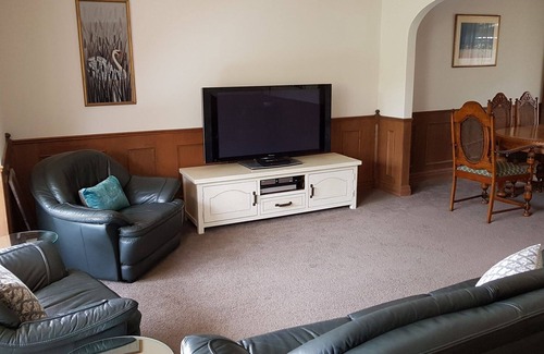 step into the spacious lounge with 50inch tv and very comfortable leather seating