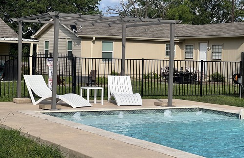 lake fork getaways features fully air-conditioned, well-appointed units on a property that includes a saltwater pool, a rec/game room (darts, pool table, board games, 75" smart tv, espresso machine, air fryer, full fridge/freezer and seating for 25), a fully-fenced courtyard (multiple bbqs, picnic area, cornhole, axe throwing, exercise equipment, tranquility fountain, fire pit) and plenty of front-door parking to power up your boat, truck and/or rv (with six full rv hook-ups available upon request)