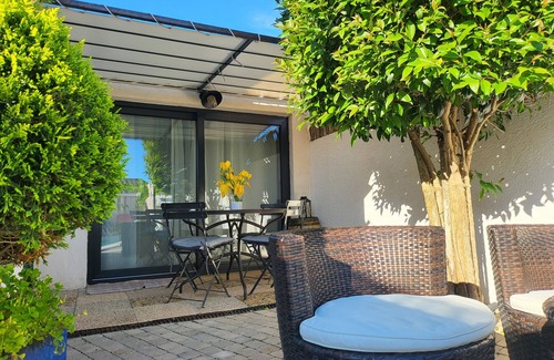 - a 600 m² shared garden with the owners, comprising three terraces: one in front of the pool with a dining table, a shaded terrace with private garden furniture, and a solarium with 2 deckchairs and a pergola for outdoor dining, even in rainy weather All unoverlooked.