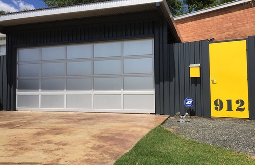 stretch out in 2000 square-feet of reinvented raw industrial space consisting of two bedrooms and two full bathrooms This loft boasts exposed brick walls, structural steel beams, and concrete floors and countertops. The Baltic-birch custom cabinetry frames the modern kitchen, containing the soft-spoken beauty of stainless Bosch appliances. The 20-foot tall ceilings are accented with exposed aluminum spiral ductwork hung with leather strapping as a backdrop to a ceiling created of both exposed corrugated steel and clear-finished tongue & groove boards. The loft also contains loads of intimate lighting tailored for your perfect evening. Industrial Lofts 912 comes equipped with a 2-car garage operated with a remote door lift, providing covered parking for your vehicles.