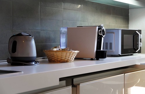 a living room, a dining area, a safe, and air conditioning are featured at this 2-bedroom, 2-bathroom rental Bathroom amenities include a hair dryer, a bidet, and towels. The kitchen is equipped with an oven, a stovetop, and a refrigerator, as well as a coffee maker, an electric kettle, and a lobster pot. And because there's access to laundry facilities, you can go a bit lighter on your packing.