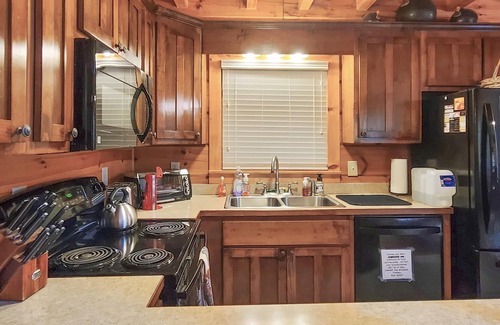 if you prefer to "dine in", you can prepare your meal in the full kitchen, use the outdoor grill or build a fire in one of two fire pits located on the property and enjoy your meal at the dining table, outside on the porch or on the picnic table After dinner, lounge on the overstuffed couch and "bear" chairs or watch the sunset from the porch rocking chairs. If you're up for some activity, enjoy the combo pool/ping pong table in the game room, play one of the many box games available to you, put together a picture puzzle, watch TV or use your laptop, tablet or iPad.