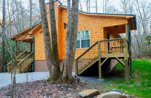 Log cabin located on Collett Creek in Andrews, NC. This cabin comes with full-size appliances including a washer and dryer, remote control gas fireplace, outdoor fire pit and hot tub equipped with waterfall and lounger. Come and enjoy the soothing sounds of Collett Creek rushing by your back deck. Enjoy the picturesque views of the Nantahala National Forest in your front yard. This is a mountain paradise!.