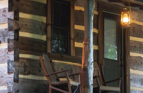 this is an 1800s-style, 2-person log cabin! the logs have the hand-hewn and fit-together look of olden days! it's the perfect space to unwind
