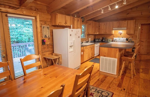 dreaming of a hidden cabin in the woods? welcome to the bear's den log cabin This charming mountain home offers peace and privacy in a great central location.
