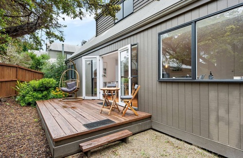 With a light-filled modern interior, the lower level offers an open plan living, dining and kitchen area, with the kitchen featuring a European laundry. The master bedroom has direct garden access, a large built-in robe and a contemporary main bathroom which has been newly renovated. Upstairs, the large second bedroom offers a spacious retreat including a desk and sitting area with stunning natural light thanks to uniquely shaped highlight windows and a lofty ceiling. Both levels enjoy year-round comfort thanks to split system air-conditioning.