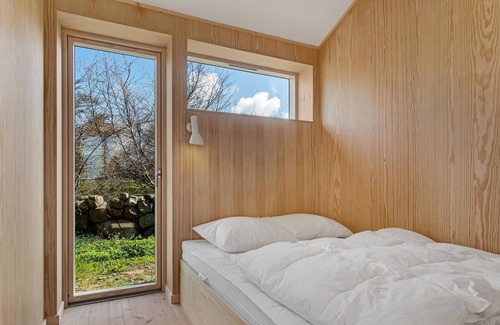 on the northwest coast of bornholm, this elegant, architect-designed vacation home welcomes you Inside, you can look forward to high-quality furnishings in a contemporary and individual design, offering everything you need to feel right at home and relax in a stylish ambience. Enjoy the view of the garden at the dining table or on the sofa and catch a glimpse of the sea. The bright and spacious living room offers you a lot of space to cook together, play and really enjoy your time together.