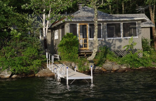 "Loon Camp" puts you right on Lake St. George - the screened in porch is only 5 feet from the water. It is one of the most desirable lots on the lake, with its unusually level land and west facing exposure, providing afternoon sun, stunning sunsets, and the panorama benefiting from being centered on the largest open part of the lake. It has nice open living room with a vaulted ceiling and a large front window. You won't be to take your eyes off the water while dining at the main table (sits 6). The farmer's porch is an incredible place to relax and enjoy the view of the lake and islands, with plenty of comfortable chairs. The quiet and seclusion of this location makes for a restful and peaceful vacation. Watching the loons swim past close to shore simply amazing. Listening to their calls at night will provide a unique experience.