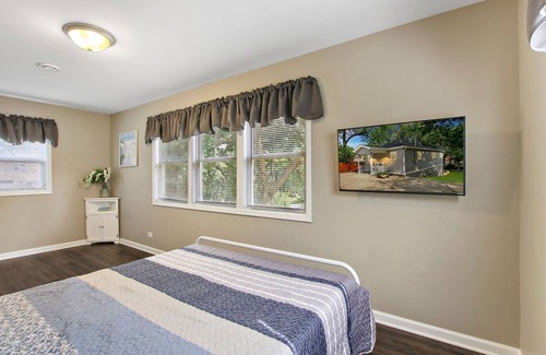 families and couples will love the modern, clean and light-filled spaces in this cozy home A roomy and inviting living and kitchen area, comfortable bedrooms, and plenty of outdoor space for playing, dining, and even sunbathing are the highlights of this charming rental. And it’s all just a stone’s throw from the waterways that make up the famous Chain O’ Lakes that this area is famous for.