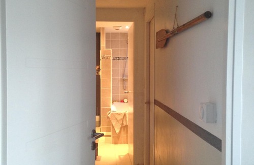the first bedroom is a suite of 18 m2 which consists of a double bed 180x200 (in which can be added a cot for a baby;) and a bathroom with toilet and walk-in shower