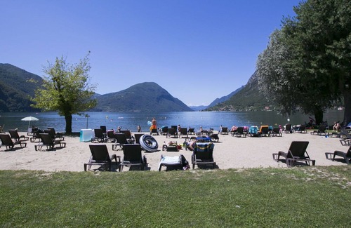 Child friendly resort "Porto Letizia", 4 storeys. 250 apartments in the residence. Property composed of main house and outbuilding 600 m from the centre of Porlezza, 12 km from the centre of Lugano, 46 km from the centre of Como, 250 m from the lake, direct access to the beach, in a cul-de-sac. For shared use: park with plants and trees, lawn for sunbathing. Beach volleyball, bathing place. In the complex: reception, restaurant, bar, shopping facilities, kiosk, lift, washing machine, tumble dryer (for shared use, extra), heating available only from 15.10. to 15.04 bicycle rental. Parking on the premises. Supermarket 750 m, pedestrian zone 600 m, 5 minute walk to the centre, bus stop 250 m, railway station "Lugano" 12 km, grass beach 250 m, outdoor swimming pool 1 km. Marina 400 m, golf course (18 hole) 12 km, surf school 50 m, riding stable 500 m, cycle lane, children's playground 200 m. Nearby attractions: Grotte di Rescia, Cascate di Begna, Villa Fogazzaro Roi, Menaggio, Lugano. Well-known lakes can easily be reached: Lago di Como. Please note: entertainment in the season. Nightclub/disco 50 m from the property. The photo is just an example. All houses/apartments are individually designed/furnished. A separate, non-accessible section of constructions is located beyond the village apartments. All the building shells are finished, work is suspended (as at January 2022).